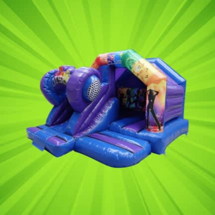 Our inflatable combo unit is designed with a disco theme, complete with a bouncy castle, slide, and colourful graphics that will get your guests in the party mood and is guaranteed to provide hours of fun and entertainment.