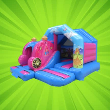 This stunning inflatable castle combines the classic bouncy castle experience with a fun and exciting 3D princess carriage design. Your guests will be transported to a fairy tale world as they bounce and play inside the castle, complete with a 3d carriage slide for even more fun.