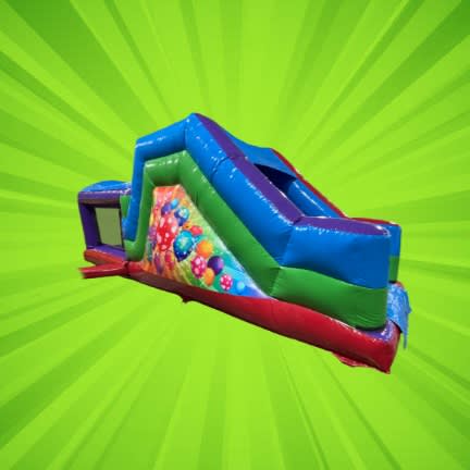 Get ready for non-stop laughter and excitement with our Multicoloured Fun Run – a giant inflatable bursting with colour and packed full of challenges! Kids will love bouncing across the bouncy bed, weaving through the bish and bash, and racing to the top before whooshing down the slide to the finish. Perfect for parties, school fun days, and community events, this inflatable is safe, action-packed, and guaranteed to keep everyone entertained from start to finish!