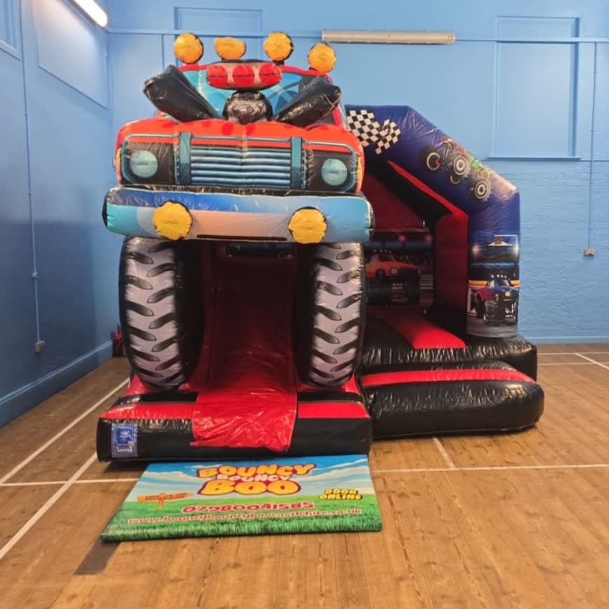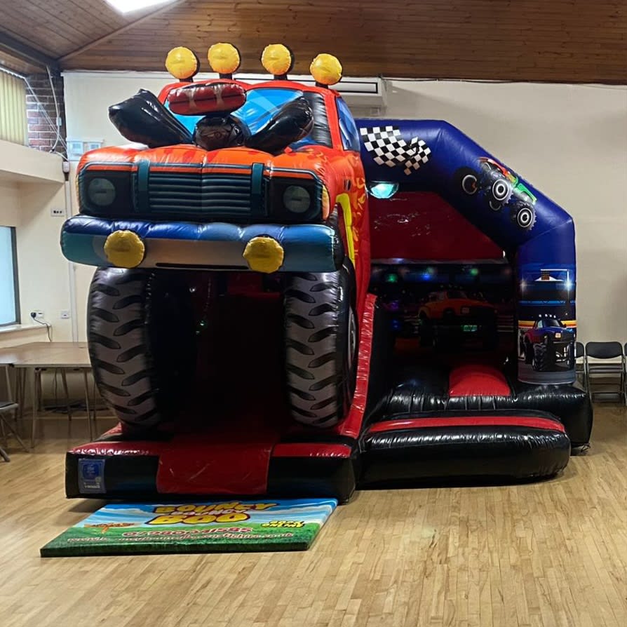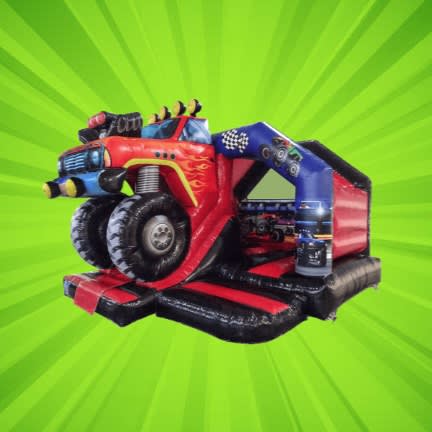 Rev up the fun with our Monster Truck Front Slide Combo Bouncy Castle—an action-packed inflatable that brings the thrill of monster trucks right to your event! Featuring a massive 3D monster truck perched above the slide, this bouncy castle combines high-flying fun with an adrenaline rush, creating the ultimate party experience.