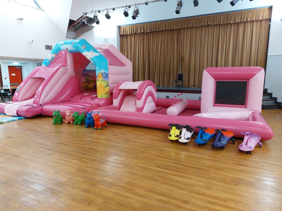 Not all of our equipment will fit in every venue due to some height restrictions. Please check the ceiling height with the venue and the inflatable height (shown on the 'size' tab on each product) before booking. We have added a list of our equipment below each venue listing showing the items we have set up there before.