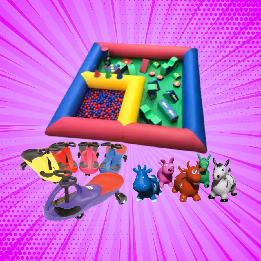 This package includes softplay area, 5 didi cars and 5 happy hoppers.